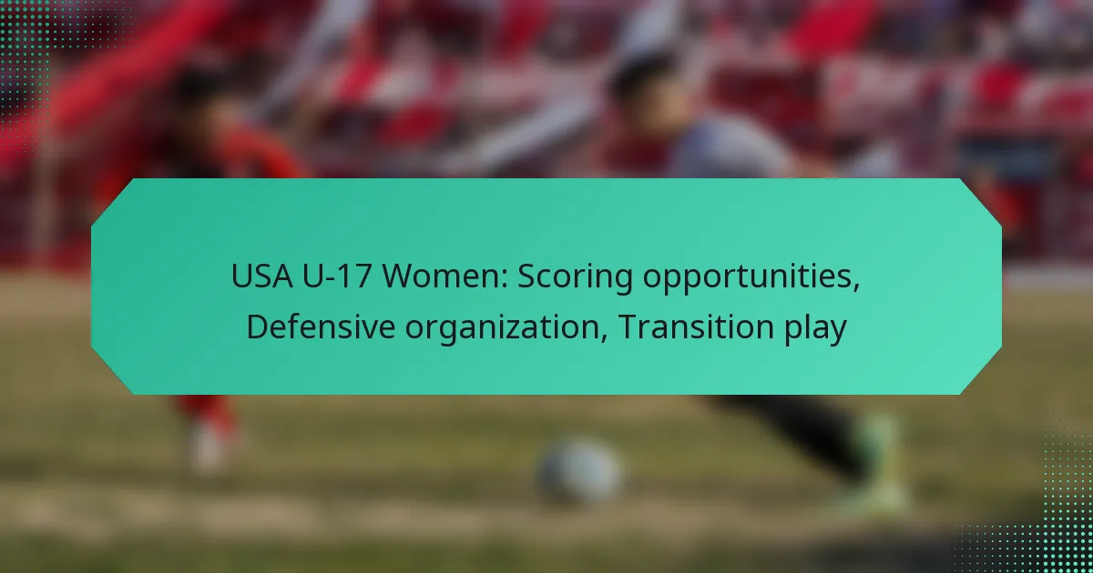 The USA U-17 Women’s soccer team excels in creating scoring opportunities through strategic player movements and formations that target defensive weaknesses. Their defensive organization is marked by structured tactics and effective communication, ensuring a solid line that disrupts opponents. Additionally, their transition play emphasizes rapid shifts from defense to offense, allowing them to capitalize on scoring chances and maintain momentum during critical moments of the game.